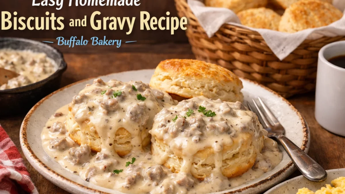 | Keywords: biscuits and gravy, Southern breakfast, homemade biscuits, sausage gravy, comfort food, breakfast recipe, flaky biscuits | |